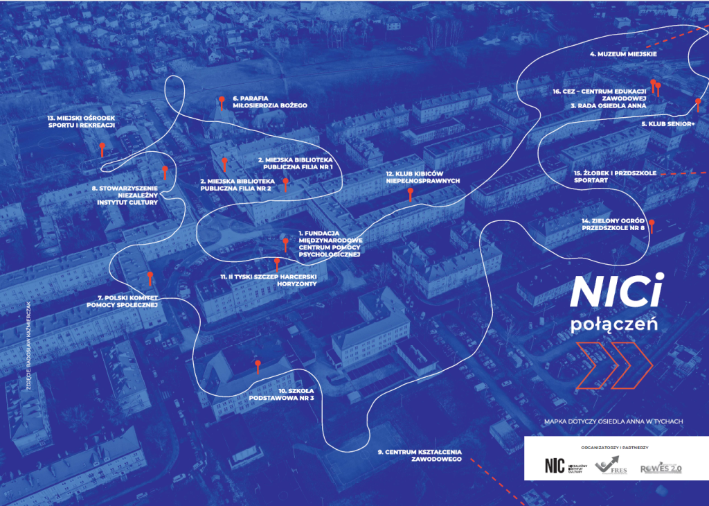 Mapka „NICI połączeń” (2025) to materiał prezentujący lokalną sieć instytucji i organizacji działających na rzecz społeczności osiedla Anna w Tychach, pokazujący ich wzajemne powiązania i możliwości współpracy. Moja rola obejmowała nadzór nad procesem powstawania publikacji oraz redakcję treści.